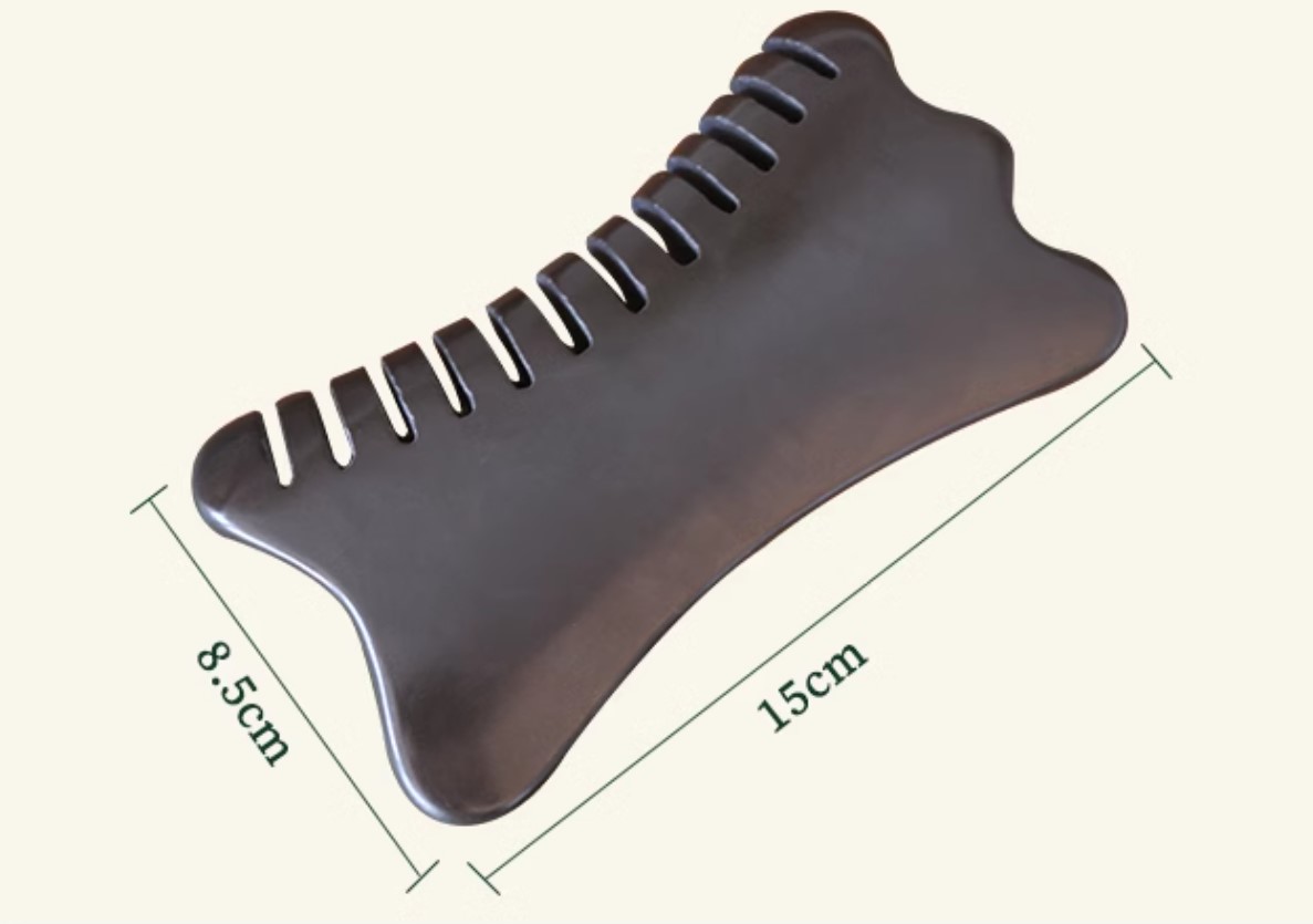 extra thick multi-purpose scraping comb of estimated dimension of about Length 15cm X Width 8.5cm X Thickness 1.5cm can be used for combing the hair. The other curve smooth side can be used for scraping and massaging/rubbing the head or any part of the body.